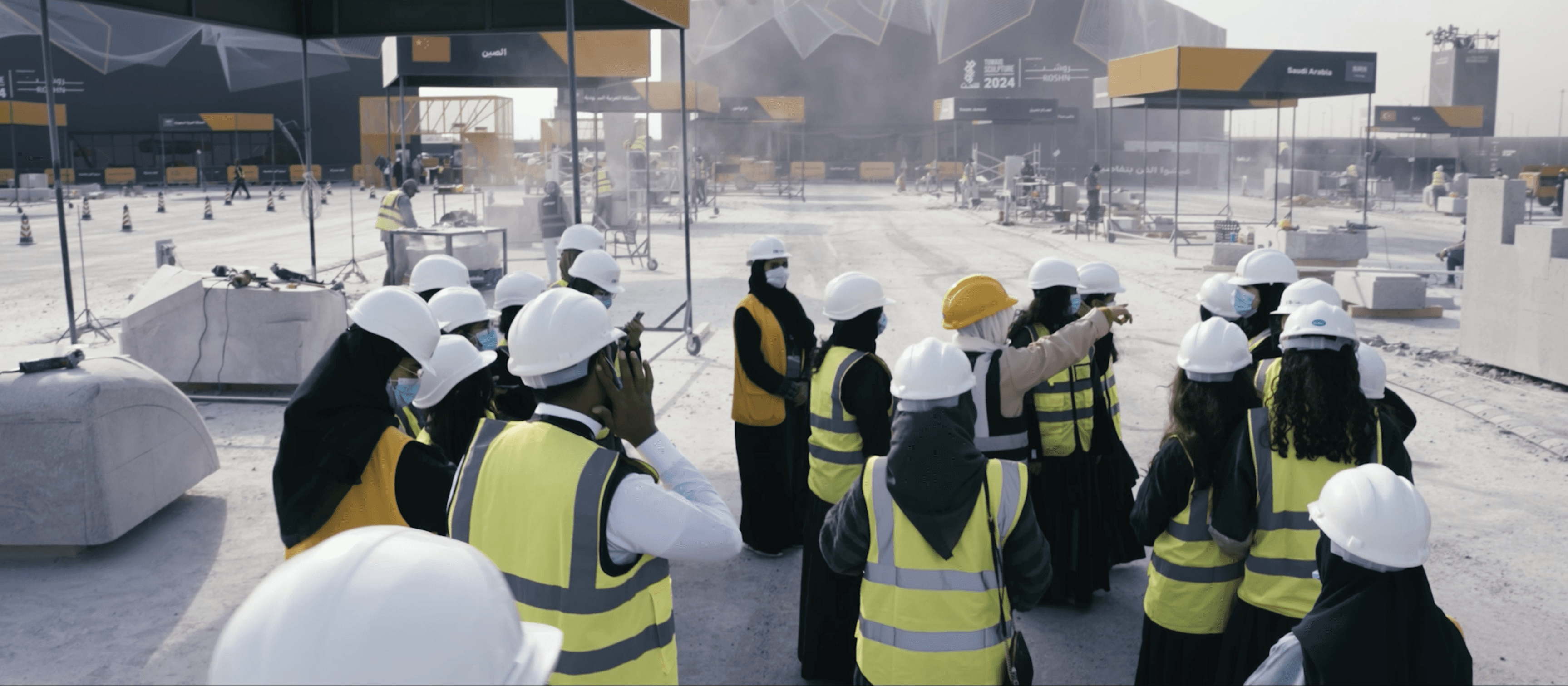 A coverage of a Tuwaiq Art event during Riyadh Art Season, focusing on the artistic interaction between artists and audience through a cinematic and expressive style.